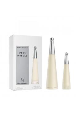 L'Eau d'Issey Eau de Toilette, il primo profumo femminile floreale acquatico, ora disponibile anche in confezione regalo. Questo set contiene: - L'Eau d'Issey Eau de Toilette nel classico formato 100 ml - L'Eau d'Issey Eau de Toilette nel pratico formato 25 ml, da portare sempre con se L'Eau d'Issey è una fragranza femminile che evoca il profumo di una goccia d'acqua che si posa sulla pelle.