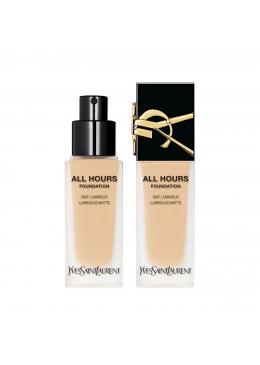 Un incarnato perfetto all day, all night, All Hours. Una formula traspirante rinnovata per 24 ore* di alta coprenza e leggerezza. All Hours è una vera esperienza ultra-sensoriale. Dona una coprenza perfetta e una pelle senza imperfezioni. La nuova formula, arricchita con Acido Ialuronico, dona una sensazione di idratazione per tutto il giorno, e apporta benefici alla pelle giorno dopo giorno anche dopo essersi struccate. La pelle appare più morbida, levigata, idratata, dopo sole 2 settimane*. Per questo nuovo All Hours, YSL ha sviluppato la sua prima tecnologia Skin-Fusing™ che imita la composizione della pelle per fondersi con essa in modo ottimale. È tre volte proof: Transfer proof, Water proof, e Sport proof. L’incarnato rimane perfetto e fresco garantendo al vostro make-up un effetto naturale e matte luminoso.