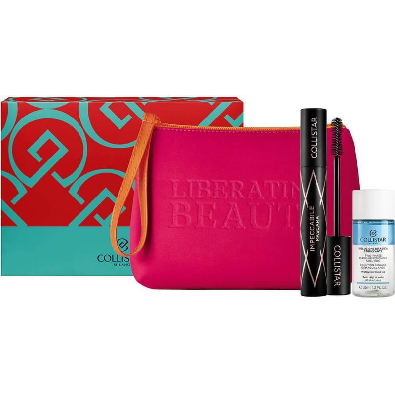 Cofanetto contenente: Impeccabile Mascara 14 ml + Soluzione Bifasica Struccante Occhi-Labbra 35 ml + Pochette. Da Collistar Clean Research® nasce Impeccabile Mascara, il primo mascara totalmente riciclabile di Collistar Milano, dalla formula clean* con il 90% di ingredienti di origine naturale e un prezioso estratto di castagne, italiano e sostenibile, per una formula trattamento efficace. Contiene inoltre un mix di cere vegetali, tra cui carnauba, riso, camomilla e girasole che la rendono leggera, morbida e delicata sulle ciglia, per mantenerle in salute e naturalmente belle. Dal colore nero intenso che dona profondità allo sguardo, Impeccabile Mascara è un prodotto multifunzione, che permette di ottenere volume, lunghezza, definizione e curvatura fin dalla prima applicazione, per un risultato senza compromessi. L’applicatore ergonomico onda consente di raggiungere anche le ciglia più corte, per un risultato a lunga durata (12 ore), a zero grumi e sbavature, e la sua texture, morbidissima e modulabile, permette di modellare le ciglia, per uno sguardo impeccabile.