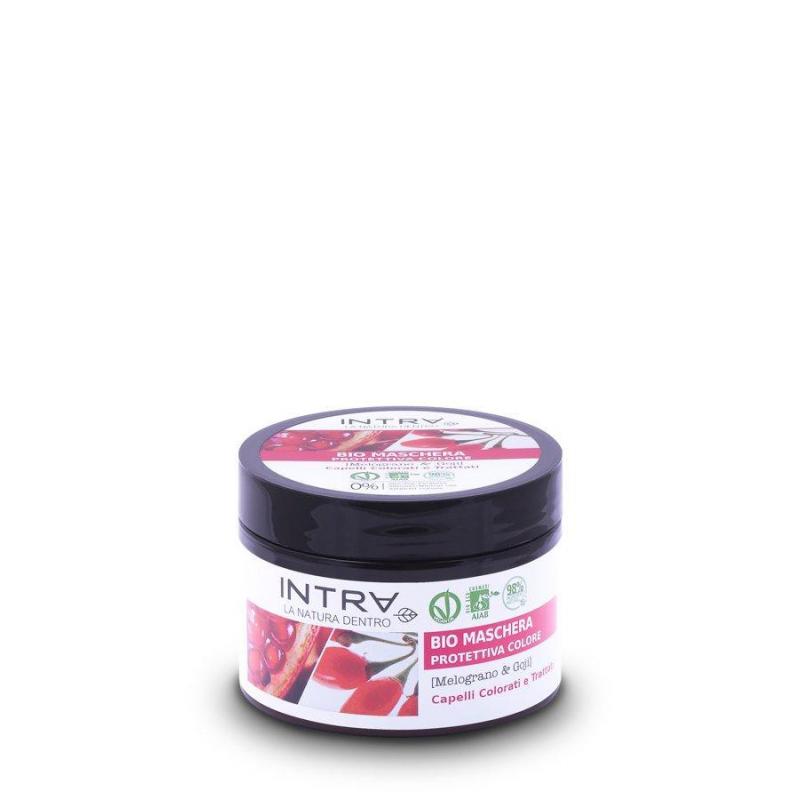 Maschera protettiva colore melograno e goji per capelli colorati e trattati.