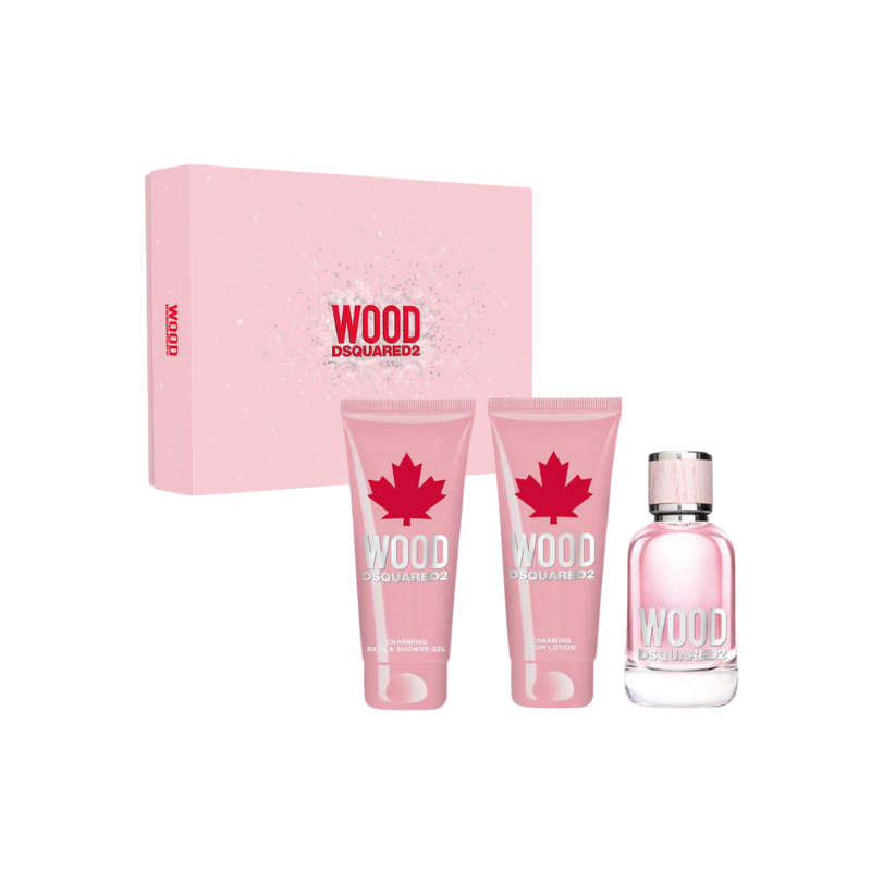 DSQUARED2 Wood for Her è un viaggio sensoriale che racconta l'essenza di una femminilità autentica, decisa e spontanea. Fin dalle prime note, la freschezza solare del mandarino siciliano e la vitalità del lampone risvegliano i sensi con un tocco vivace e giovanile. Il cuore floreale, un intreccio raffinato di magnolia, mughetto e osmanto, trasmette grazia e naturalezza, evocando la purezza della natura e la forza dell'identità femminile. Nel fondo, la struttura legnosa e calda dell'ambrox e del legno di cedro crea un equilibrio perfetto tra forza e delicatezza, rendendo la fragranza riconoscibile e persistente. Il cofanetto unisce tre gesti complementari - profumo, crema corpo e bagno doccia - per un rituale quotidiano di benessere, eleganza e sensualità.