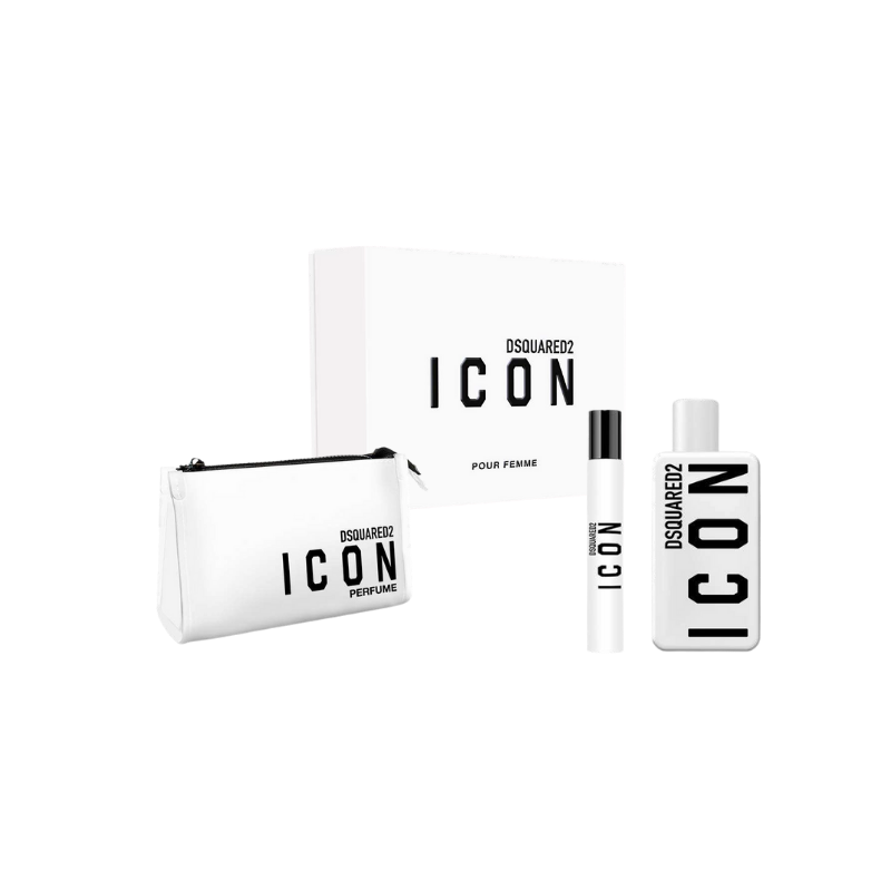 DSQUARED2 Icon For Her rappresenta l'essenza di una donna moderna: forte, indipendente e magnetica. L'apertura rivela la freschezza elegante del bergamotto italiano, che illumina la composizione prima di lasciare spazio a un cuore di fiori bianchi, sensuali e vellutati. Sul fondo, l'ambra e i legni chiari conferiscono profondità e durata, creando un equilibrio perfetto tra luminosità e calore. La fragranza si evolve con naturalezza, svelando il carattere e la grazia di chi la indossa. Il cofanetto offre un rituale di eleganza completo: Eau de Parfum 100 ml, il formato principale per un uso quotidiano o serale. Eau de Parfum 10 ml, pratico e raffinato, ideale da portare sempre con sé. Trousse DSQUARED2 in edizione limitata, accessorio chic per custodire i tuoi essenziali di bellezza. Un set pensato per accompagnare la donna contemporanea con stile e sensualità, in ogni viaggio e in ogni gesto.