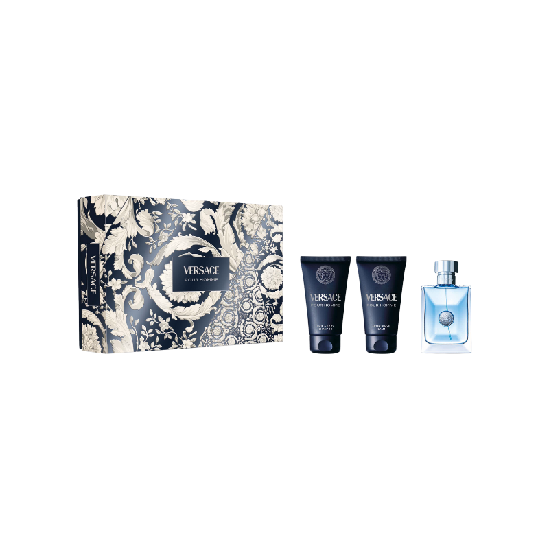 Il Cofanetto Versace Pour Homme Eau de Toilette racchiude l'essenza della virilit moderna. La fragranza combina agrumi mediterranei e note aromatiche, bilanciate da un fondo legnoso e ambrato. Il Hair & Body Shampoo e l'After Shave Balm completano la routine con eleganza e praticit. Un set raffinato e versatile, ideale per l'uomo che ama sentirsi impeccabile in ogni occasione.