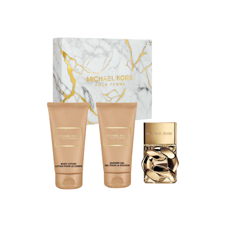 Michael Kors Absolu Femme è un'esperienza olfattiva che seduce e conquista. L'apertura dolce e speziata di pepe rosa e ribes conduce a un cuore opulento di gelsomino sambac e tuberosa, avvolto da sfumature cremosissime. Il fondo, dominato da ambra dorata, vaniglia e sandalo, regala una profondità calda e vellutata. Un profumo che rappresenta potenza e femminilità, ideale per le serate più eleganti. Il cofanetto arricchisce il rituale con bagnodoccia e lozione corpo profumata, per un'esperienza completa di lusso e bellezza.