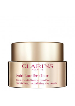 Innovazione Clarins Pro-Aging Nutrition. I Laboratori Clarins hanno sviluppato due principi attivi ultra potenti che risvegliano tutta la luminosità della pelle. L'estratto di fiori d'ippocastano biologico e l'escina, una molecola attiva estratta dal frutto, migliorano il funzionamento della rete micronutriente della pelle. Un duo vitalità che nasce dal savoir-faire dei Laboratori Clarins e favorisce la diffusione dei nutrienti nella pelle. Nutrita, la pelle ritrova tutta la sua luminosità. Nutri-Lumière Giorno è la crema in olio dalla texture fondente e sensoriale ideale per rivitalizzare, nutrire intensamente e risvegliare la luminosità della pelle denutrita. Si adatta a tutti i tipi di pelle.