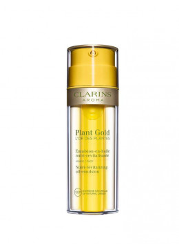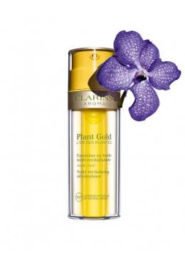 Ispirandosi ai gesti dei professionisti degli istituti, Clarins crea un innovativo doppio flacone dedicato a Plant Gold – l'Oro delle piante. Una doppia formula inedita: l'iconico olio Huile Orchidée Bleue Clarins e un'emulsione fondente si uniscono all'applicazione in una texture leggera e non grassa, conferendo alla pelle comfort, vitalità e luminosità.