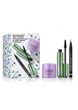 Set occhi che comprende mascara ad alto volume, eyeliner e balsamo struccante: per uno sguardo definito e completo.