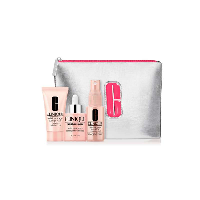 Clinique Glow All Over Set – Moisture Surge Active Glow Serum è un cofanetto pensato per donare alla pelle un aspetto idratato, luminoso e radioso. I prodotti inclusi contengono acido ialuronico, aloe bio-fermentata e ingredienti idratanti ad alte prestazioni che rinforzano la barriera cutanea e mantengono la pelle fresca e compatta. All’interno del set: Moisture Surge Active Glow Serum (30 ml) – siero illuminante che uniforma l’incarnato e migliora l’idratazione. Moisture Surge Overnight Mask (30 ml) – maschera notte che rigenera e rimpolpa la pelle durante il riposo. Moisture Surge Face Spray Thirsty Skin Relief (30 ml) – spray viso idratante da utilizzare in qualsiasi momento della giornata. Dermatologicamente testato, privo di profumo, adatto a tutti i tipi di pelle, anche sensibili.