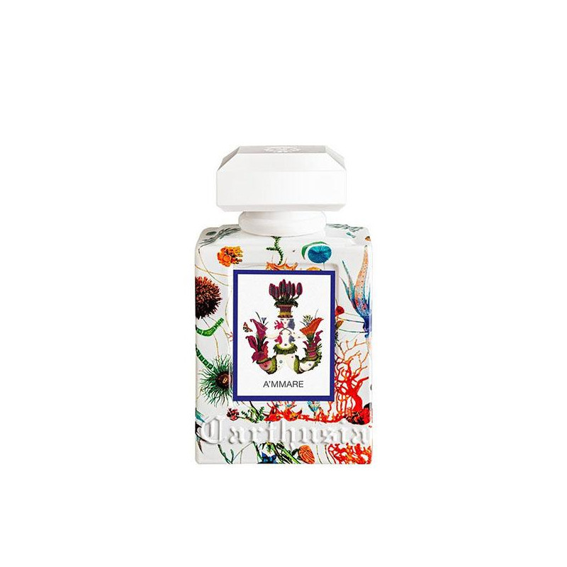 L'orizzonte è blu. Il Bergamotto di A'mmare, solare e brillante, incontra il rosmarino. Aromatico, a tratti pungente. Sulla pelle il sale, fattosi cristallo. Limpido inconfondibile. Un tuffo rinfresca, lascia spazio al nuovo. Foglie di menta, morbidezza tenera, verde. Energia nascosta. Ora la vista si sazia, l'orizzonte è completo. Legno di Credo e di Guaiaco, foresta preziosa, proteggono Patchouli e Musk , doni in arrivo da lontano.