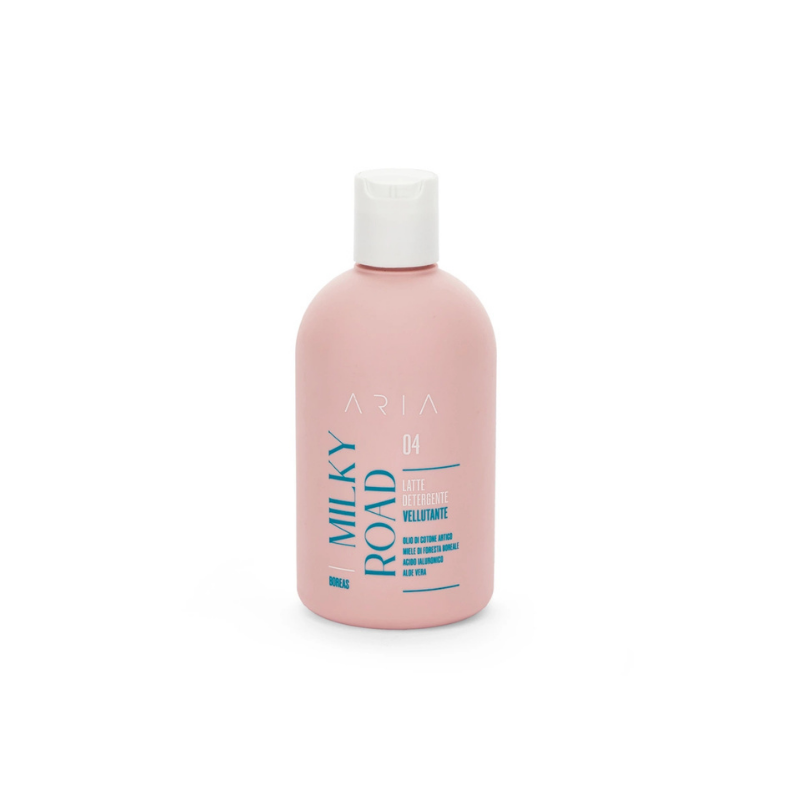 Aria Milky Road è un latte detergente morbido e cremoso che deterge la pelle del viso con estrema delicatezza, restituendole comfort e idratazione. Formulato con Burro di Karité e Olio di Mandorla Dolce, ammorbidisce e nutre la pelle, mentre l’Aloe Vera e l’Acido Ialuronico contribuiscono a mantenere il corretto livello di idratazione cutanea. Gli estratti di Loto e Magnolia, dalle proprietà lenitive e antiossidanti, completano la formula proteggendo la pelle dalle aggressioni esterne. Ideale per tutti i tipi di pelle, anche le più sensibili, lascia il viso fresco, pulito e piacevolmente vellutato.