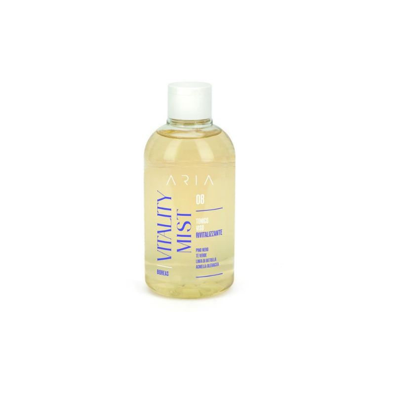 Aria Vitality Mist è un tonico viso rivitalizzante formulato per restituire freschezza e luminosità alla pelle dopo la detersione. Grazie agli estratti di Loto e Magnolia, dalle proprietà lenitive e antiossidanti, aiuta a riequilibrare il pH cutaneo e a tonificare delicatamente, rendendo la pelle più elastica e compatta. L’Acido Ialuronico garantisce un’idratazione profonda e duratura, mentre l’Aloe Vera apporta comfort immediato anche alle pelli più sensibili. La texture leggera e la profumazione delicata regalano una piacevole sensazione di freschezza, lasciando il viso morbido, tonico e pronto a ricevere i trattamenti successivi.