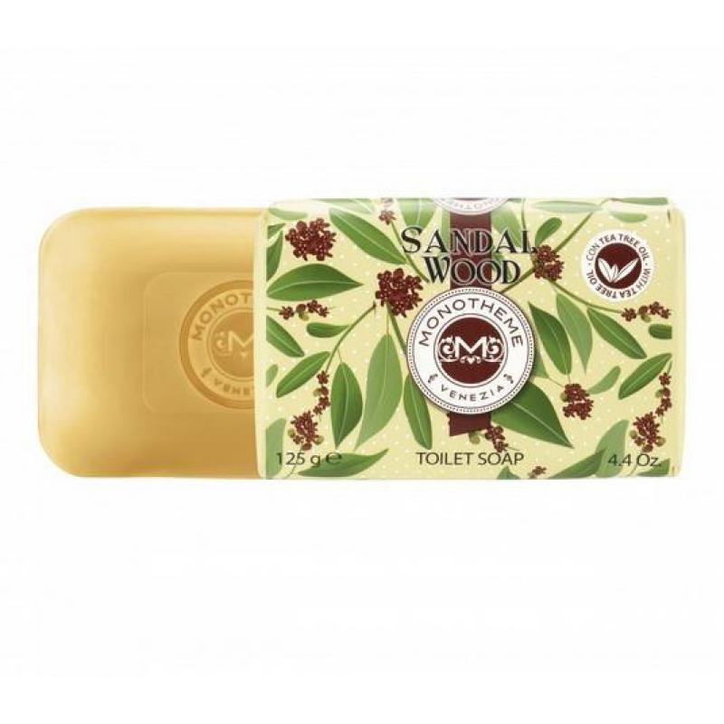 Monotheme arricchisce il proprio rituale di bellezza e igiene con una collezione di saponette profumate le materie prime sono le indiscusse protagoniste e l'aggiunta di TEA TREE OIL, un antibatterico naturale con proprietà antisettiche e antimicotiche, le rende un indispensabile alleato per la cura della propria pelle. Una preziosa saponetta con calde note di legno di sandalo.