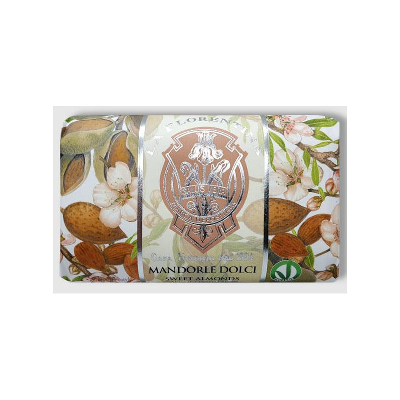 La Florentina sapone solido Mandorle Dolci lavorato con cura artigianale utilizzando ingredienti naturali per il benessere e l’idratazione della pelle.