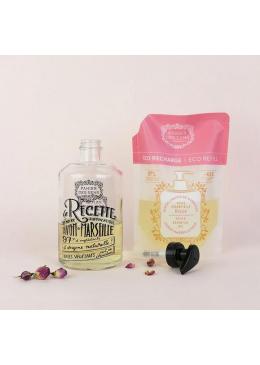Prodotto con oli vegetali, questo sapone liquido supergrasso è cotto in un calderone nella più pura tradizione marsigliese. Eco-progettata ed economica, questa ricarica di sapone liquido dà una seconda vita ai vostri flaconi e riduce i rifiuti domestici. La rosa, simbolo dell'amore, fiore degli dei, bellezza effimera e fragilità della vita. La sua fragranza universale e lussuosa (1 tonnellata di fiori per ottenere meno di 90 grammi di olio essenziale) la rende un prodotto di scelta e di qualità per il mondo della profumeria e della cosmesi. Molto popolare, l'olio essenziale di rosa è noto per le sue proprietà rigeneranti, ammorbidenti e tonificanti. Prodotti dedicati alle pelli delicate. Per il benessere: lenisce e aiuta a combattere lo stress, l'ansia e i disturbi del sonno. Bellezza: vero e proprio tonico della pelle, è riconosciuto per le sue proprietà rigeneranti, rivitalizzanti e cicatrizzanti.