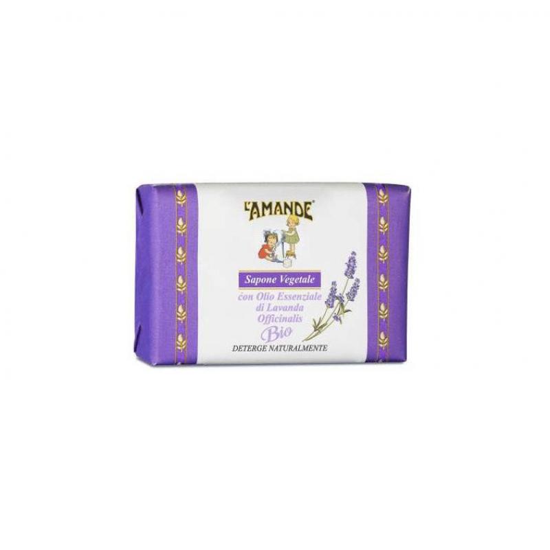 Sapone purissimo L’Amande Marseille 100% vegetale, arricchito dall’olio essenziale di Lavanda Officinalis del Piemonte Bio dalle note proprietà rilassanti ed emollienti. Neutro, senza alcali liberi è indicato per le pelli più delicate. La sua schiuma morbida e cremosa dal profumo di lavanda vi regalerà un momento di vero relax. Non contiene coloranti, conservanti. Dermatologicamente testato. Made in italy.