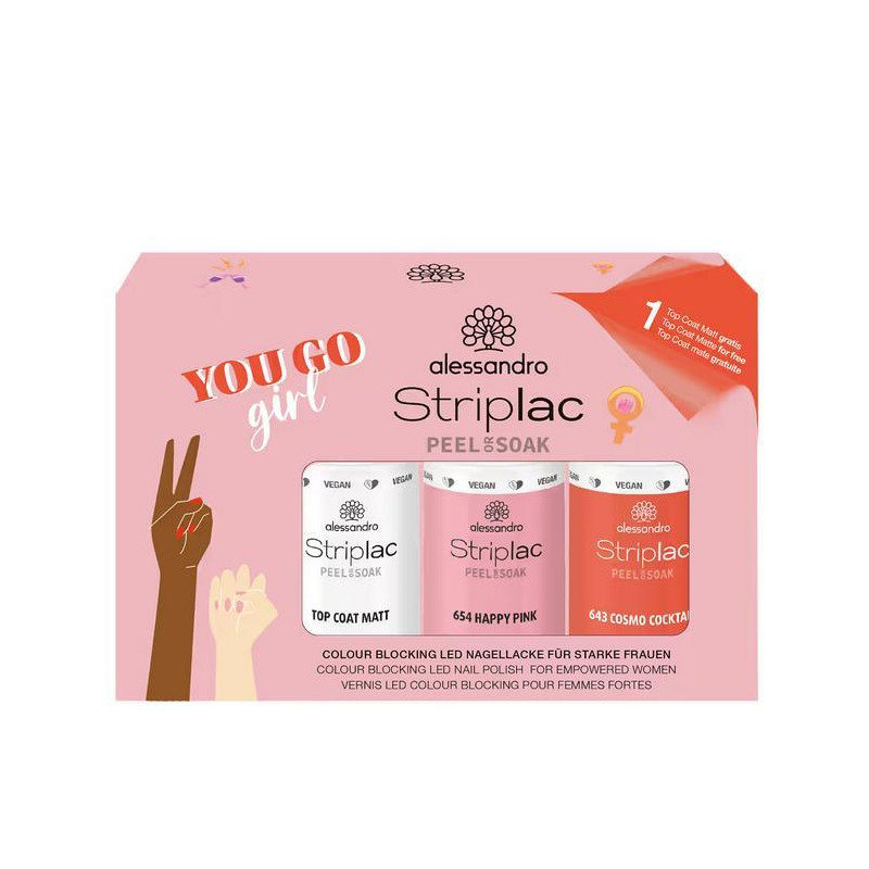 Cofanetto contenente: Striplac Happy Pink 5 ml + Striplac Cosmo Cocktail 5 ml + Striplac Top Coat matt 5 ml. STRIPLAC 2.0 è il semipermanente 2 step must have per le donne che desiderano unghie perfette in poco tempo. Applicazione 2 Step facile e veloce: 1 stesura di colore e 1 stesura di Top ed è finito! Non serve applicare la base. Solo 2 passaggi di lampada, nessuna limatura e si rimuove semplicemente sfilandolo o con il solvente. Fino a 3 settimane di durata.