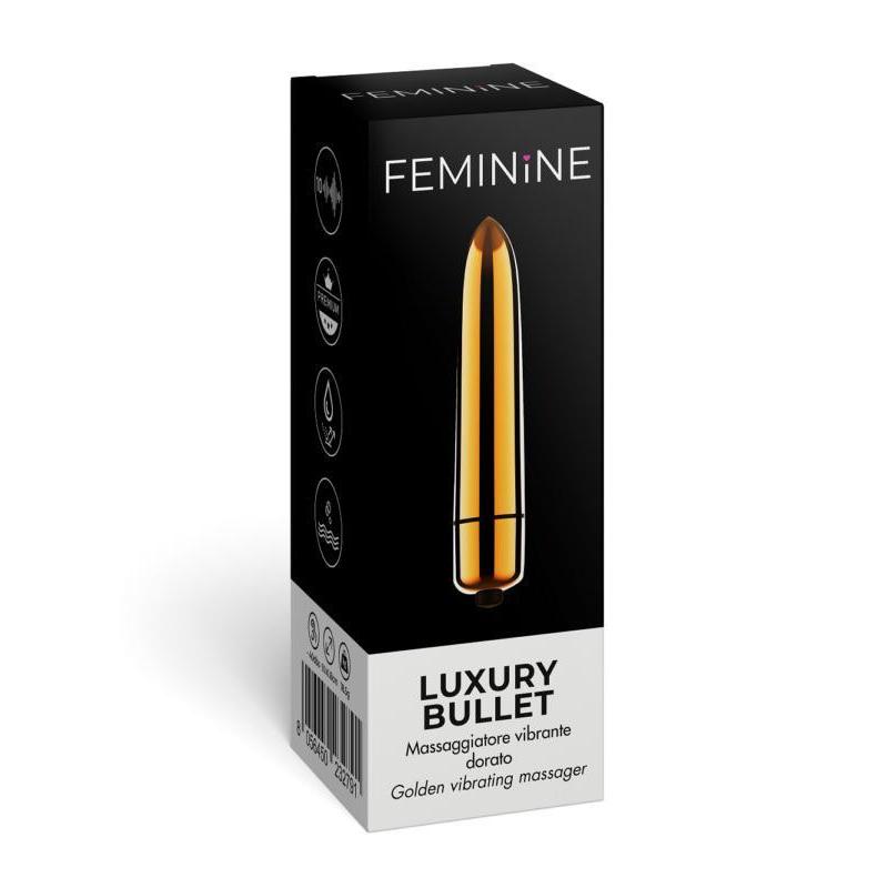 Feminine Luxury Bullet è un lussuoso massaggiatore vibrante portatile (9 cm) per i tuoi momenti di relax, con 10 diverse tipologie, pulsazioni e intensità di vibrazione.