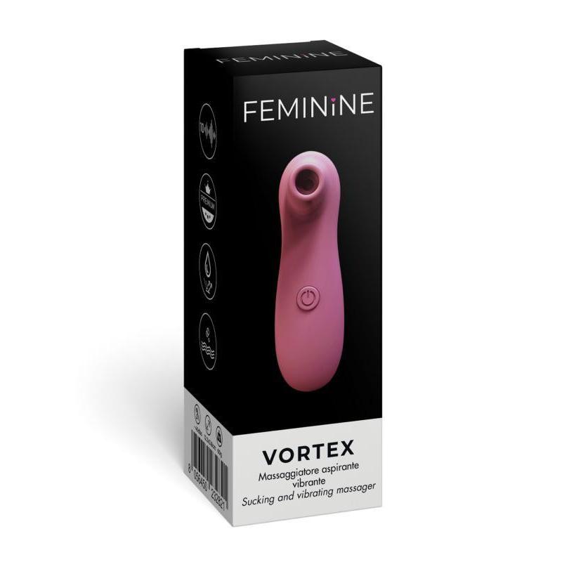Feminine Vortex è un massaggiatore aspirante e vibrante per un piacevole momento di benessere, con 10 diverse tipologie, pulsazioni e intensità di VIBRAZIONE.