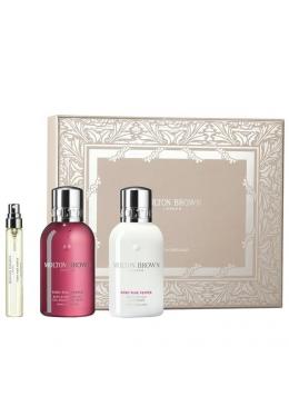 Il Molton Brown Fiery Pink Pepper Travel Gift Set è un kit profumato pensato per chi ama lo stile e desidera una fragranza intensa in formato compatto. Il set include tre prodotti della linea Fiery Pink Pepper: Gel doccia 100 ml Lozione corpo 100 ml Eau de Parfum 7,5 ml (mini formato) La fragranza è una composizione speziata e vibrante, con note di rosa pepe, tangerina e accenti legnosi, ideale per chi ama profumi energici e distintivi. Il cofanetto è perfetto come idea regalo elegante o per chi vuole viaggiare mantenendo la propria fragranza preferita.