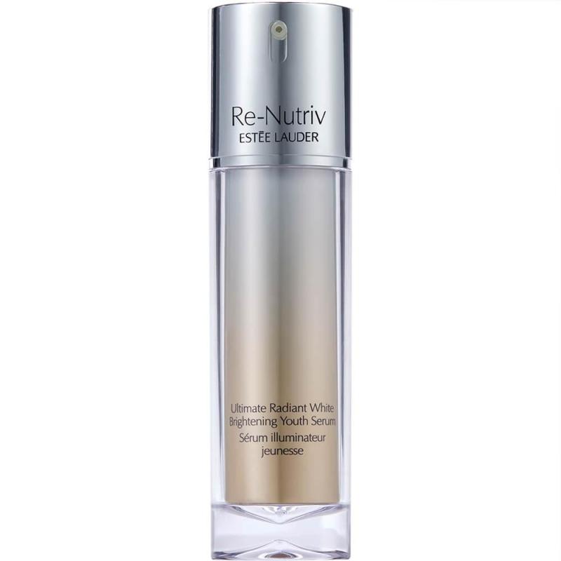 Re-Nutriv Ultimate Radiant White Brightening Youth Serum. Ultima innovazione con un brevetto della ricerca Estee Lauder. Estrema rigenerazione. Estremo Lifting e rassodamento. Estrema capacità di resistenza del tessuto cutaneo. Siero Illuminante Ringiovanente che penetra rapidamente per ridurre l'aspetto delle macchie e rivelare un aspetto più luminoso e più uniforme. Infuso con Tuberosa Bianca, l'estratto aiuta a combattere l'irritazione, una delle cause principali dello scolorimento della pelle. Le macchie scure e le discromie appaiono notevolmente ridotte. La pelle risulta più liscia, raffinata.
