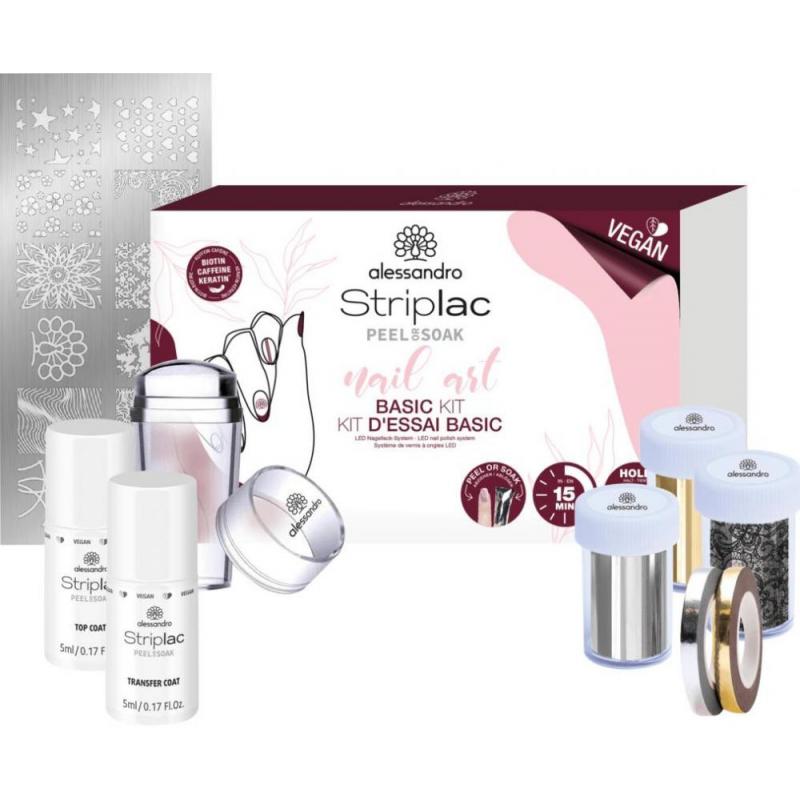 Il must-have Nail Art Basic Kit per unghie semplici e veloci disegni con molte possibilità diverse. Deciso o sgargiante, il Kit Base Nail Art ti dà la possibilità di liberare la tua creatività. Che si tratti di un modello di stencil timbro o un abbellimento più sottile utilizzando le pellicole di trasferimento, questo kit vi offre varie opzioni per trasformare le unghie in un vero e proprio eye-catcher.