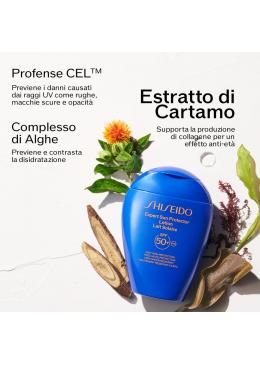 Lozione invisibile e leggera per viso e corpo che offre una protezione efficace dai raggi UVA e UVB. È dotata della NUOVA Tecnologia SynchroShieldRepair™*, il cui velo protettivo si rafforza con l'esposizione al calore, all'acqua e al sudore e si autoripara quando viene danneggiato lievemente da movimenti o sfregamenti. Assicurarsi di riapplicare frequentemente e generosamente prima e durante l'esposizione al sole, poiché nessun prodotto solare può garantire una protezione totale e continua dai raggi solari. Ricordarsi di adottare abitudini responsabili di esposizione al sole, come indicato nella sezione Modalità d'uso. *La NUOVA tecnologia SynchroShieldRepair™ è progettata per adattarsi ai fattori ambientali che potrebbero comprometterne l'efficacia (test in vitro). Scegli il meglio del trattamento solare Shiseido con Shiseido Sun Expert Protector Lotion SPF30. Questa lozione sensoriale SPF30 è arricchita con il 68% di ingredienti skincare per una pelle levigata e compatta, e offre un'elevata protezione UVA/UVB. Protezione solare formulata con il 68% di ingredienti skincare: - Complesso di alghe marine combinato con derivati dell'acido glicirrizico: aiuta a lenire la pelle secca e irritata e fornisce idratazione. - Profense CEL: aiuta a proteggere la pelle dai danni fotoindotti e a prevenire rughe e macchie scure - Safflower Extract: aiuta a rafforzare la compattezza e la densità della pelle per un effetto anti-età*. - Complesso Hypotaurine + NatureSurge: aiuta a combattere i danni causati da inquinanti atmosferici*. *Test in vitro Flacone in plastica al 70% di origine vegetale (senza tappo e dispenser).
