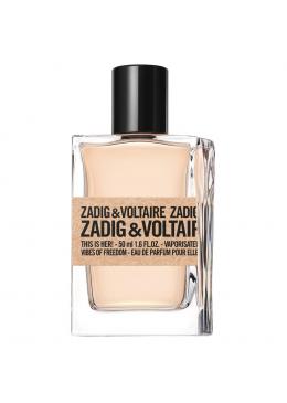 This is Her! è un soffio di libertà e di freschezza. La nuova Eau de Parfum da donna di Zadig&Voltaire, creata da Sidonie Lancesseur, è un concentrato fresco e floreale di gioia e vibrazioni positive!Una fresca ondata di libertà portata dalla peonia e dalla pera frizzante. Il tocco luminoso del gelsomino e quello moderno della rosa. Le note inebrianti di crema di castagne. Universo This is Her! Vibes of Freedom Con This is Her! Vibes of Freedom, Zadig&Voltaire ci racconta che la libertà è un istinto che vive nel più profondo di ognuno di noi e palpita al ritmo della natura. È una vibrazione con cui dobbiamo riconnetterci nuovamente. Una vibrazione che sentiamo dentro di noi.