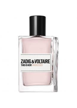 THIS IS HER! UNDRESSED Eau de Parfum, la nuova fragranza femminile di Zadig&Voltaire. In This is Her! Undressed le note di fiori d'arancio, sensuali e solari, si combinano con i toni di ylang-ylang per creare un profumo originale esaltato ulteriormente dalle note di legno di sandalo. Le note di zenzero provocano un'esplosione di luminosità, accentuata da un avvincente accordo di pelle salata. Un profumo da donna luminoso e sensuale, con note di fiori d'arancio e zenzero fresche e vibranti. Una fragranza che dona una sensazione di pelle scaldata dal sole, avvolta dalle note di ylang-ylang e messa in risalto dall'accordo salato. Una fragranza femminile dalla firma intima, grazie al muschio e all'accordo di legno di sandalo. This is Her! Undressed, un profumo femminile floreale boisé e speziato creato da Sidonie Lancesseur per una donna forte, libera, che infrange le regole. Una fragranza intima e sensuale, personale e avvolgente.
