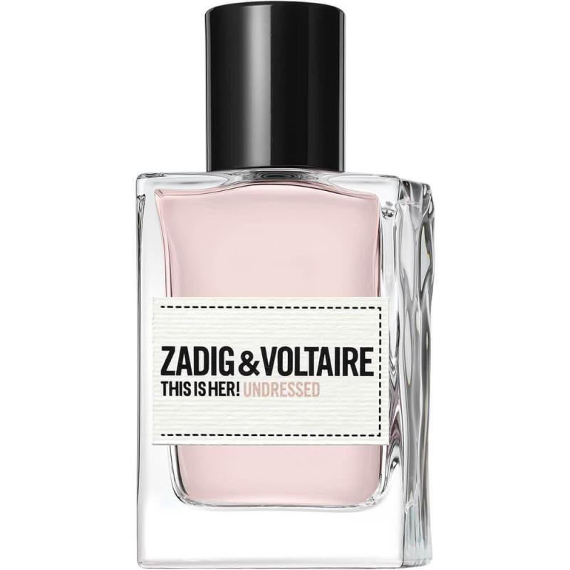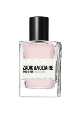 THIS IS HER! UNDRESSED Eau de Parfum, la nuova fragranza femminile di Zadig&Voltaire. In This is Her! Undressed le note di fiori d'arancio, sensuali e solari, si combinano con i toni di ylang-ylang per creare un profumo originale esaltato ulteriormente dalle note di legno di sandalo. Le note di zenzero provocano un'esplosione di luminosità, accentuata da un avvincente accordo di pelle salata. Un profumo da donna luminoso e sensuale, con note di fiori d'arancio e zenzero fresche e vibranti. Una fragranza che dona una sensazione di pelle scaldata dal sole, avvolta dalle note di ylang-ylang e messa in risalto dall'accordo salato. Una fragranza femminile dalla firma intima, grazie al muschio e all'accordo di legno di sandalo. This is Her! Undressed, un profumo femminile floreale boisé e speziato creato da Sidonie Lancesseur per una donna forte, libera, che infrange le regole. Una fragranza intima e sensuale, personale e avvolgente.