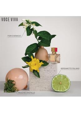 Voce Viva Valentino traccia un parallelismo tra voce e profumo. Come una voce, una fragranza è personale, intima e lascia una traccia. Così, questa fragranza avvolge con un bouquet floreale di gelsomino e d’arancio, reso assolutamente irresistibile da un inaspettato accordo di muschio cristallo. Voce Viva è un inno alla voce di ogni donna: la mia voce, la mia forza. Voce Viva Eau de Parfum esalta le infinite sfaccettature della femminilità di Valentino: Nota Color: un'apertura vivace e frizzante di Bergamotto Italiano, addolcita da un mandarino dolce e succoso. Nota Couture: un bouquet opulento di assoluta di fiori d'arancio e un accordo di gardenia dorata. Nota Cool: un inaspettato muschio cristallo conferisce un'intensità contemporanea alla fragranza, resa irresistibile da un avvolgente infuso alla vaniglia.